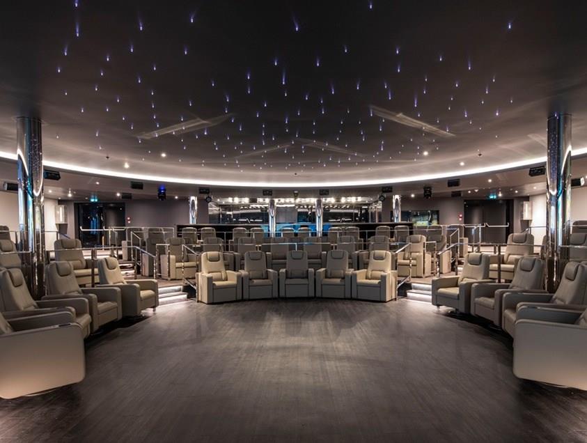 Relax in the Yacht Club grill restaurant and bar for breakfast, lunch, and special themed dinners. This casual dining experience is fitted with food islands, indoor seating, and outdoor lounge seating. Come to dine, mingle, and relax in swing chairs overlooking the view, or taste our freshly made gelato.