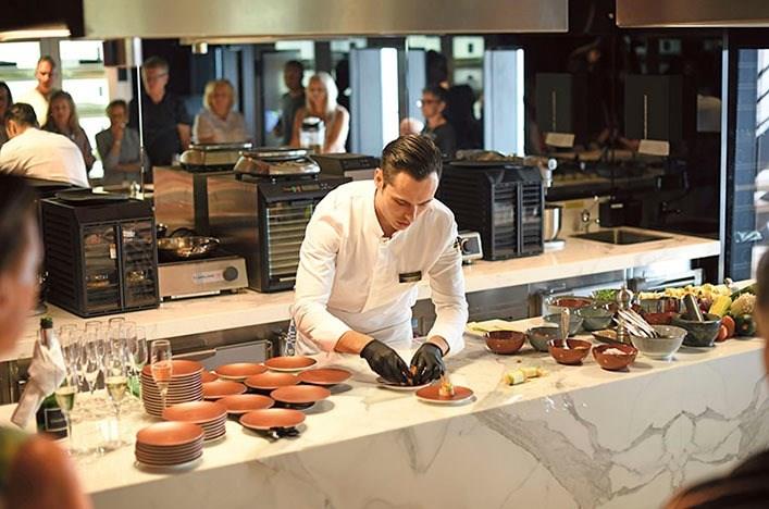 Experience the gastronomical delights of local cuisine and wines prepared by our expert chefs and sommelier. Located on Deck 5 with a special cooking station and large TV screen, you’ll enjoy every detail.